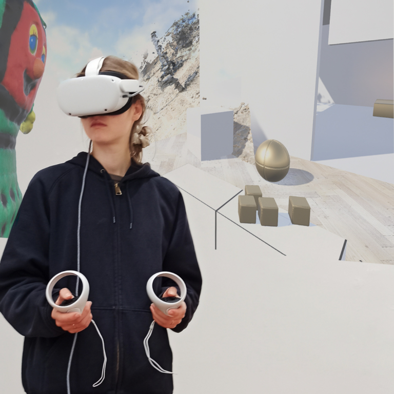 “The sound of matter” is a VR game where you travel between fragments of time and space to find clues and solve a boycott.